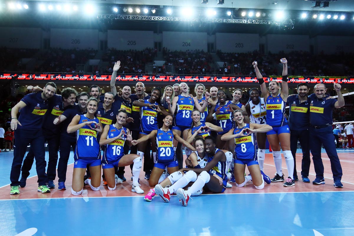L'italia del volley festeggia la medaglia di bronzo vinta dalle azzurre agli europei.